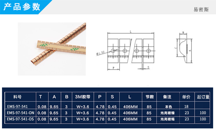 EMS易密斯,2009年創(chuàng)立于昆山,主要產(chǎn)品為EMI鈹銅簧片、不銹鋼彈片、導(dǎo)電泡棉和其他配套電子材料,是目前華東最具規(guī)模、產(chǎn)品最齊全的民用電子設(shè)備EMI電磁干擾屏蔽材料解決方案提供商。