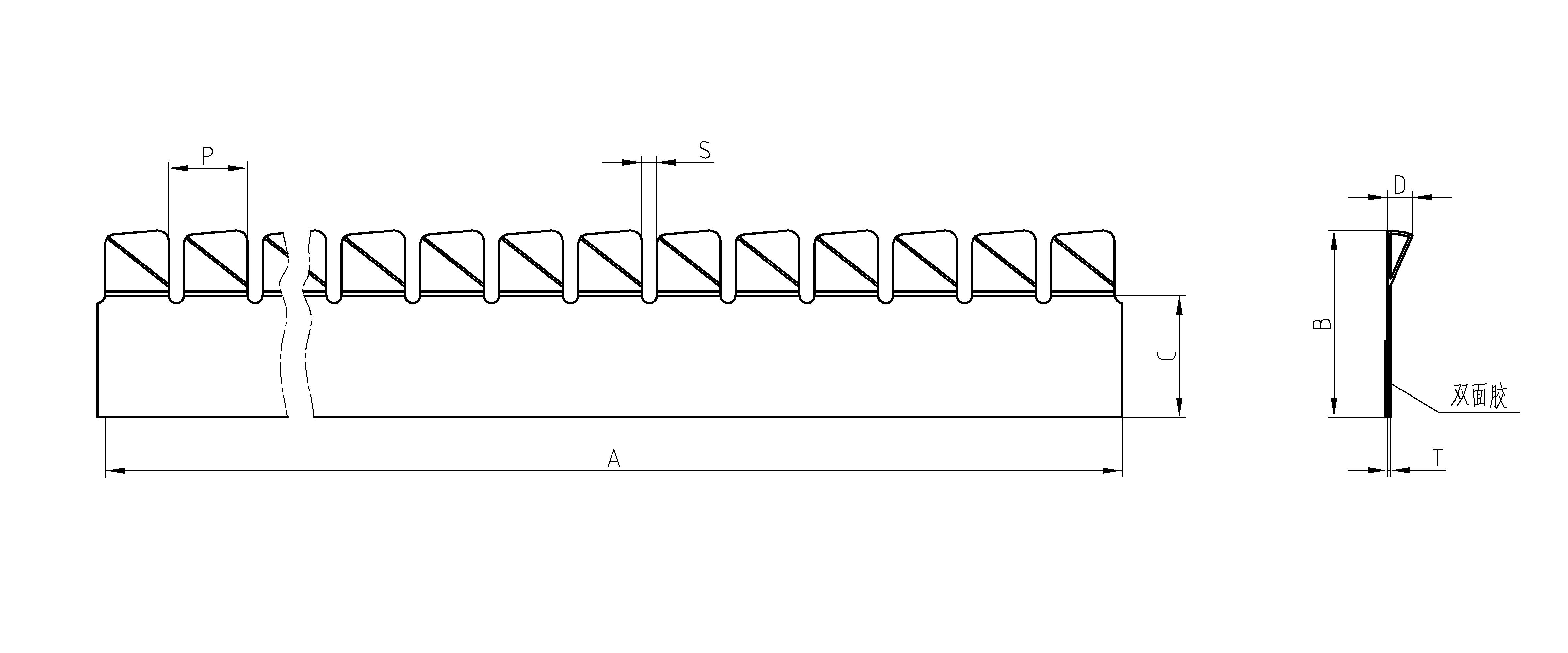 雙向扭轉(zhuǎn)型指形簧片,從圖中可以看到,在壓敏膠粘合面的兩側(cè),都設(shè)計(jì)有可扭轉(zhuǎn)折疊的指形結(jié)構(gòu)。相當(dāng)于一次安裝,起到了兩條簧片的作用,再次節(jié)省了安裝空間。