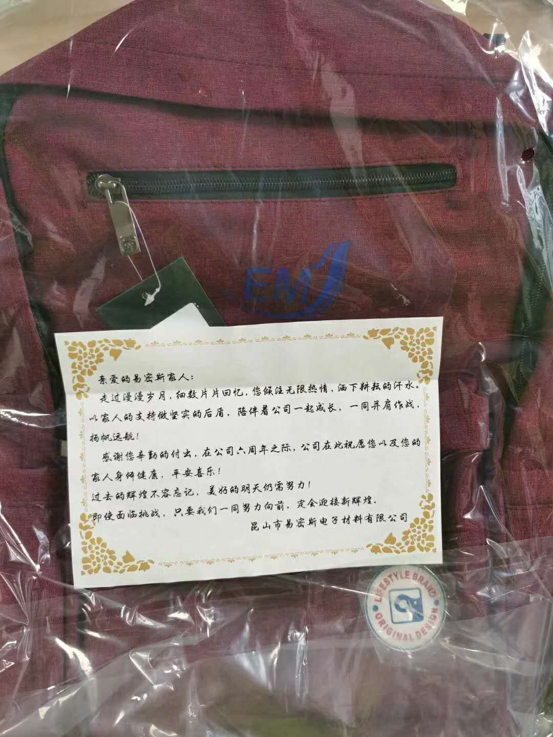 為感謝各位同仁及各界朋友六年來對公司發(fā)展的支持與關(guān)愛,公司于2020年6月5日 18:00在江蘇省昆山市周市鎮(zhèn)長江綠島花園F95-100號特此舉行紀念慶典活動,讓我們一起同慶公司六周年華誕。同時為表謝意,感恩每位員工的付出,公司也特意準備了禮物。精心定制了特屬于易密斯人的背包及慶賀卡片。為每個人送去貼心的祝福和美好的愿望!活動期間,氛圍融洽,每個部門員工聚在一起共聊公司趣事。工作期間我們嚴謹認真,私下我們嬉嬉笑笑暢談生活趣事。這個重要的日子當時少不了慶典的儀式感,特意為公司準備了生日蛋糕。我們共同點上生日蠟燭,唱響生日祝福歌,每個人許下愿望。世間所有的美好祝福都匯聚于此!說到儀式感,易密斯是個有溫度的企業(yè),往年節(jié)日公司都會為員工及家人準備禮物,為了增加員工之間的感情會舉辦旅游、徒步等團建等活動。公司希望可以帶著員工走向更廣闊的世界,看過更美麗的風(fēng)景!