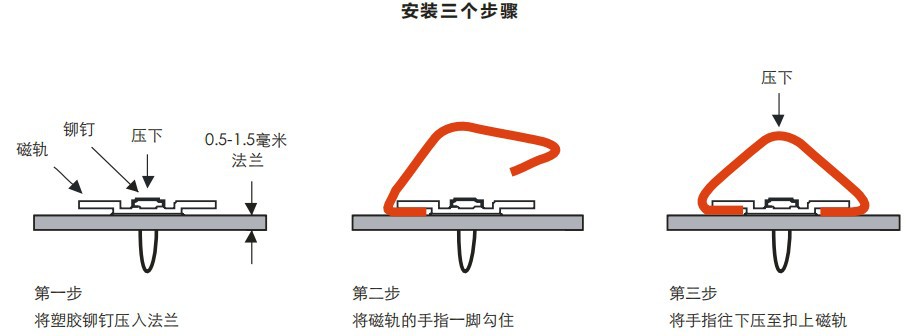 產(chǎn)品帶扣式槽和邊緣安裝對(duì)稱式手指使用單一或雙手指,雙向應(yīng)用易于安裝。